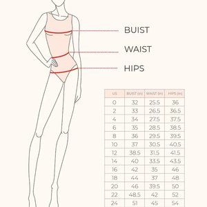 There is no specific size in the dress as it is handmade to order, but it fits like a size 8 or 10. For reference, I am 5'9 and a size 8/10, depending on brand. There is a tie-up corset back so could work for various sizes. There is boning in the top and it has cups, so no bra required.