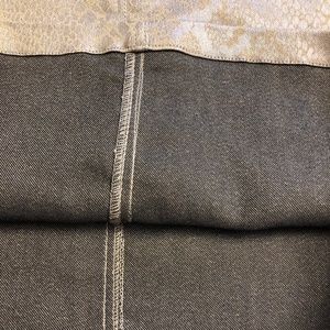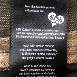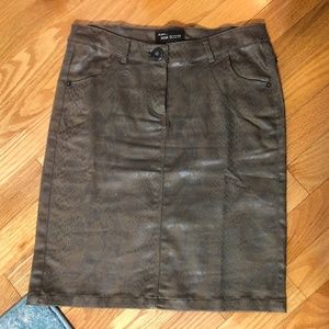 Short adjusted skirt with jeans type fabric printed with small patterns. 2 front pockets, one front ziper. No lining. Like new.