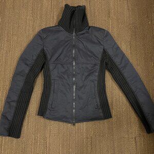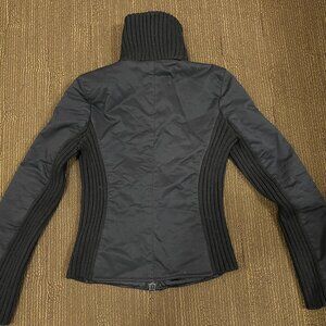 Short black quilted jacket with knit side detail