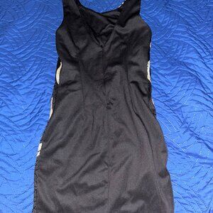 Robe courte noire avec sequins noirs et dorés. Idéale pour les fêtes.