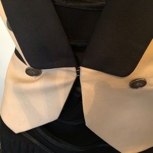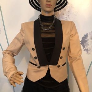 Short classic 2 colors jacket. Closing at the front. Very nice fabric and style.