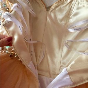 Hannah Sheridan short strapless formal dress in a beautiful champagne color. Dress is a size four but runs small! Only worn once