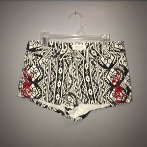 Short shorts with a black and white pattern, jean material, never worn, mint condition