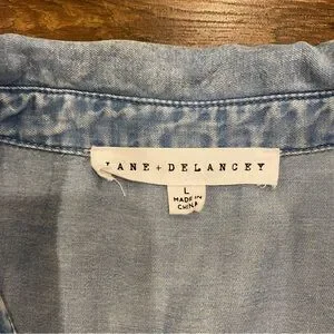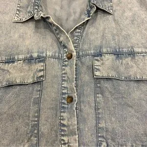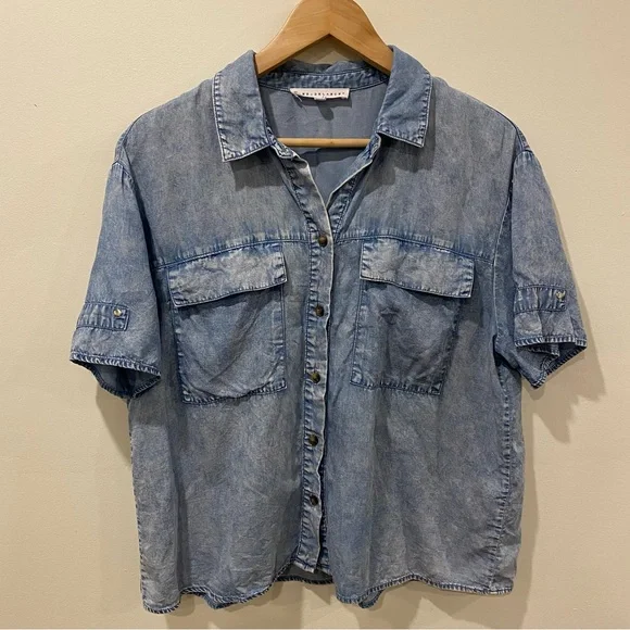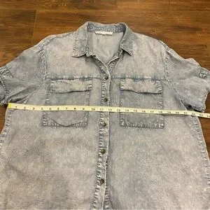 Jane + Delancey button down shirt in a size large. Comfy and casual short sleeve style with a stylish straight hemline. Breezy lyocell material.