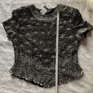 Short sleeved beaded Papell Boutique evening top