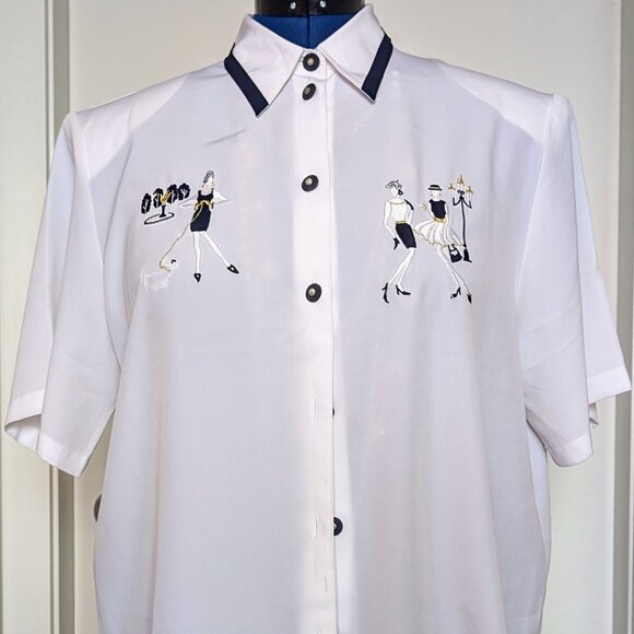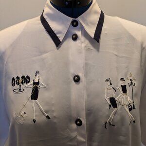 Short sleeved blouse with Girls in Paris embroidery and exquisite furnishing🪡