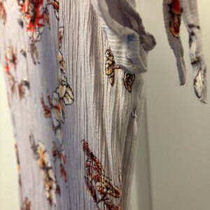 Lovely summer dress. Size large, but would say this fits more like a medium. Length is just above my ankle (I am 5 ft 7). The dress features a zipper, and is lined to the mid thigh. Slit on left side of dress, to the mid-thigh. Unsure of fabric composition, but fabric is crepey so is awesome for travel.