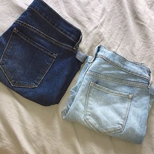 2 PAIRS!! Blue and light-wash shorts 12” Good stretch, NEVER WORN Butt lifting