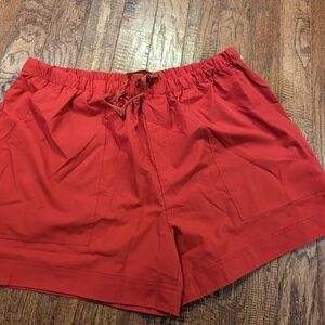 Loose fit red shorts, elastic waist, drawstring, plus size 2x, size 20/22 -no size tag please see measurments.. lightweight, wicking, Deep pockets great for cell phone and keys.