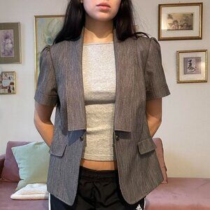 Isn’t this piece fun? I feel like we could all use pieces that are appropriate to wear to work but also can showcase individual style. This shortsleeved blazer is unique and chic. Style this blazer for the office with a pair of dress pants or showcase your street style by wearing it with a pair of baggy track pants.
