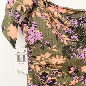 Floral metallic one shoulder swimsuit. Features removable pads and tie at shoulder