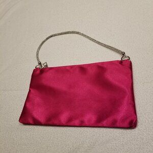 Shoulder Bag & Crossbody Removable Strap Pink Fuchsia Satin Purse Bejewelled NWT