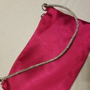 Shoulder Bag & Crossbody Removable Strap Hot Pink Fuchsia Satin Purse Bejewelled NWT