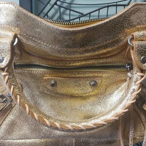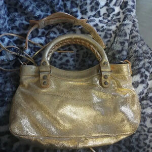 Shoulder Bag/Satchel Sparkling Gold Crackled Leather Bag with Tassels