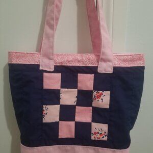 Shoulder Tote Bag Handbag Purse, Handmade Patchwork Pink Blue Quilted Market