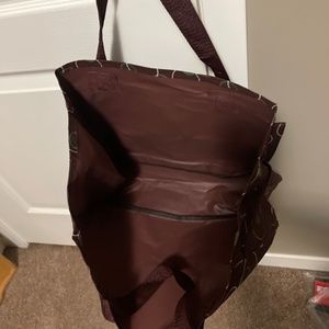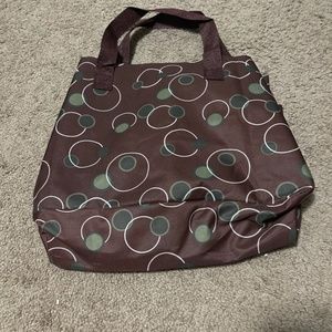 Unbranded Canvas Shoulder Tote Picnic Bag Brown Circles.