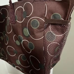 Shoulder Tote Picnic Bag Brown Circles