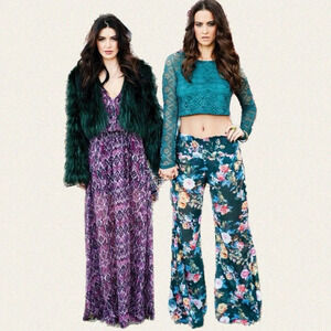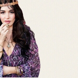 The perfect boho maxi dress. Long bell sleeves, cinched/elastic waist, and a v-neckline with ties. So flowy!