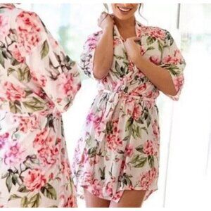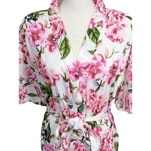 Show Me Your MuMu Robe Brie Garden Of Rose Blooms Floral Short Sleeve One Size