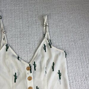 Show Me Your Mumu Remy Romper White/Cream Green Cactus AOP Button Size Small