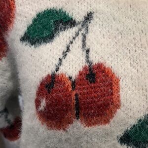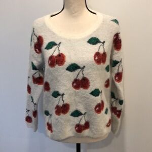 Shrinking violet sweater cherry white fluffy soft SZ XS
