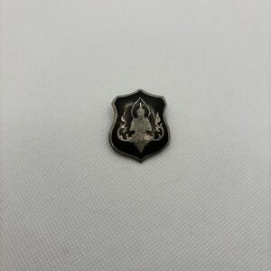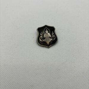 Step back in time with this stunning vintage Siam Niello Black Enamel Brooch. Crafted with intricate detailing and high-quality materials, this piece is a true representation of mid-century style. The black enamel adds a touch of elegance, while the Niello technique creates a striking contrast that will make heads turn. The brooch is made in Siam, adding to its historical value and uniqueness. Perfect for collectors or anyone looking for a timeless accessory, this brooch is sure to elevate any outfit. Limited quantities available. Measures 1 1/8" x 1 3/8".