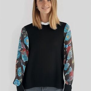 ruffled sleeves , full sleeves sweater, sheer sleeves, printed sleeves casual wear sweater