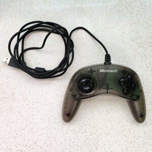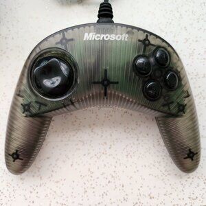 Vintage 1999 PC Gaming Controller- Microsoft Sidewinder. Plug & Play gamepad in deep forest green and smoke colours. Original box, and booklet included- like new condition was only used once.