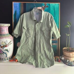 Sierra Designs Shirts Men's XL Olive Green Cotton Stretch Short Sleeve Button Up