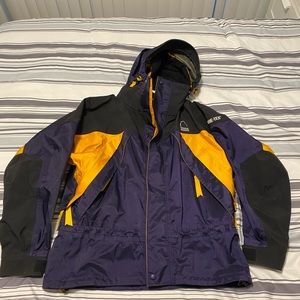 Vintage Sierra Designs goretex Winter Shell coat. Size M. Jacket is in good condition. Zipper on/off hood, vent zippers on side of jacket. It’s gore Tex so light, waterproof and breathable but meant to be worn with layers if wearing in very cold temps. There is lots of room for layers in the jacket. Def more roomy than an average medium.