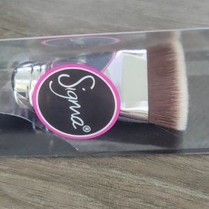 Carve out your contours and define shape with precision using the flat edge of this short, dense Sigmax® fiber brush with cream or powder.