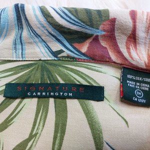 Check out this Signature Carrington Men's 100% Silk Tropical Floral Hawaiian Shirt in very great pre-owned condition, no rips or stains on it.