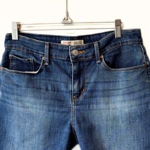 These Signature Levi Strauss & Co. mid-rise shorts feature a medium-wash blue denim with light fading for a casual, everyday look. Designed with a classic five-pocket style, zip fly, and cuffed hems, they offer a clean and slightly tailored silhouette. The denim has a soft feel with a bit of stretch, making them a comfortable go-to for warm days. In great condition. A versatile, easy-to-style piece for everyday casual looks.