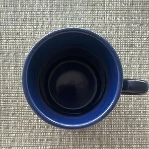 This ceramic mug showcases a striking deep navy blue color adorned with a large stylized letter 'S' in a contrasting lighter shade. Its classic cylindrical shape and comfortable curved handle make it perfect for sipping your favorite drinks.