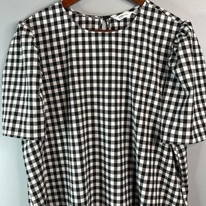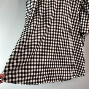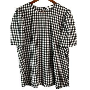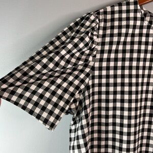 Signature Reitmans Seersucker Gingham Plaid Blouse Puff Sleeve Black White XXL