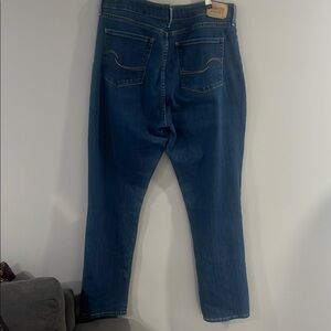 Stylish mid-rise jeans in classic blue denim. Ideal for casual outings. Size 16, 46 cm waist, 107 cm length