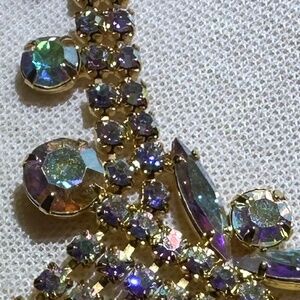The 1970s ~ Vintage gold plate hand prong set aurora borealis crystal paste rhinestone adjustable choker bib necklace with long graduated fringes on the bib - Hollywood glamour! and a beautiful "something old" for a bride or for other special occasions.