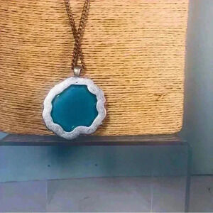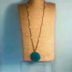 Signed Avon Turquoise Acrylic Rose. Silver tone chain faux pearls.