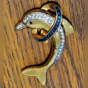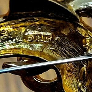 Add a touch of vintage elegance to your collection with this stunning Butler Fifth Avenue signed dolphin brooch. Featuring a graceful gold-tone dolphin design, this piece is a beautiful example of classic mid-century costume jewelry.