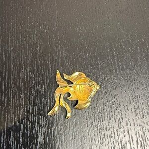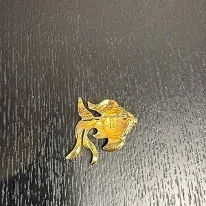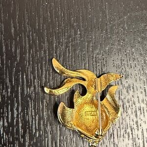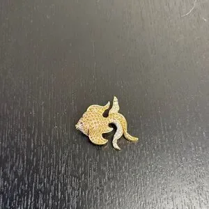 This stunning signed Butler brooch features a beautifully sculpted fish design adorned with sparkling clear and brown crystals. The gold-tone metal and dimensional shape add richness and movement, making it a standout piece for collectors and jewelry lovers.