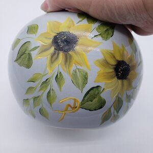 Signed Grey Hand Painted Yellow Sunflower Greenery Ceramic Vase - 5" (H)