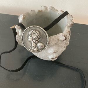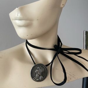 If you would like to wear her as a pendant. I can include the retro suede choker. It is an excellent way to highlight this artful piece. The choker also lends itself well to the style of the flapper’s era.
