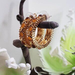 Signed Joan Rivers 3/4 Hoop Earrings with Gold tone and Amber tone Beads