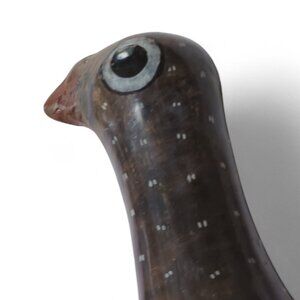 Measurements: approx. 11" × 6" × 3". Very good vintage condition with light surface wear consistent with age. No cracks or major chips. Minor natural variation on the beak reflects its handmade craftsmanship (see photos).