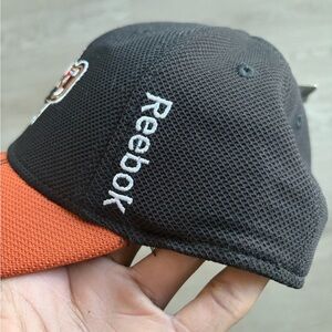 Reebok cap with bold black and orange design. Features team logo embroidery. Size small see pictures