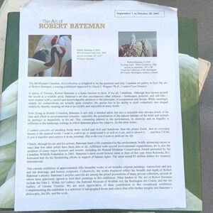 -including an advertising flyer for the book, a small advertising print of a Downy woodpecker copyright 2001, and a letter dated 2007 from the McMichael Canadian art collection advertising an upcoming Bateman exhibit.