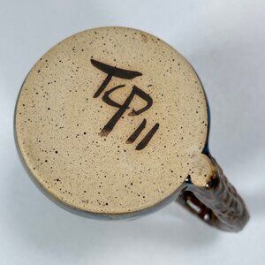 Signed Studio Pottery Mug Blue Brown Glaze Handmade One of a Kind
