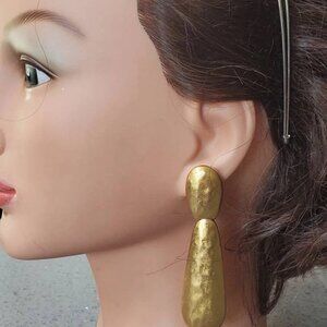 Signed Vendome Hammered Matte Gold-tone Long Clip-on Earrings