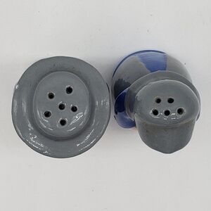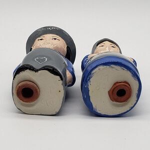 Signed Vintage 1984 Amish Blue Grey Man & Woman Ceramic Salt & Pepper Shaker Set