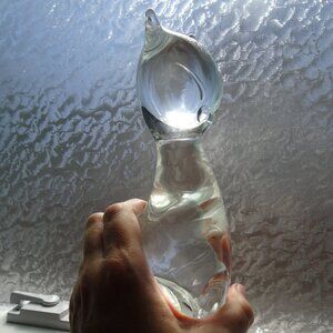Large vintage clear glass cat with slit eyes signed on bottom by Zanetti.